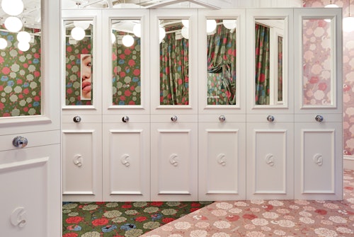 The store is also covered in customised Glossier floral patterns, and is ran by "offline editors" who help in-store.