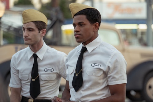 We learn later that Archie dreams of being a screenwriter, but he doesn't want to be pigeonholed into making stories only about black people. Still, he says studios won't hire a black writer, so he's currently writing cheap vaudevillian plays and hoping for his big break. By the end of the episode, you get a glimpse of what could be a dazzling opportunity: Archie sleeps with and forms a connection with Roy Fitzgerald, Hollywood's stand-in for famous actor Rock Hudson.