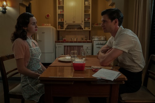 "My character has a certain optimism, a lack of jadedness, at least at the beginning of the series," Corenswet told EW of Jack, who moves cross-country with his pregnant wife after hearing of the opportunities Hollywood has to offer in a cinema advertisement. Fresh out of war and classically handsome, Jack believes he'll be plucked out of obscurity if he can just land a gig as a studio extra. But he never gets picked. When he tries to convince a casting director to choose him out of the sea of actors who line up every morning, she snaps that a good-looking kid like him with no acting training is "a dime a dozen."